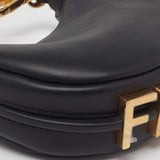 The Fendi Nano Fendigraphy Hobo captures the essence of modern luxury in a compact, sculptural form. Crafted from smooth black leather and accented with bold gold-tone hardware, this miniature hobo embodies Fendi’s playful elegance and unmistakable craftsmanship.