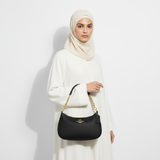 Designed with a curved shape and signature gold-tone hardware, the Teri Bag adds a touch of luxury to any outfit. The detachable crossbody strap and chain-detailed shoulder handle offer multiple ways to wear — whether you’re dressing up for an evening out or keeping it casual on the go.