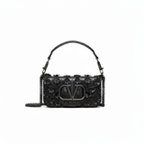 At the center, the bold VLogo hardware in matching matte black makes a powerful monochrome statement, elevating the bag with unmistakable Valentino identity. Both the detachable top handle and chain shoulder strap provide versatile styling options—carry it by hand for sophistication or wear it crossbody for a more contemporary allure.