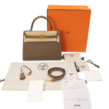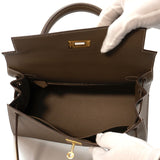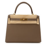 -Kelly II Sellier 28 – Epsom Calfskin in Etoupe with Gold Hardware