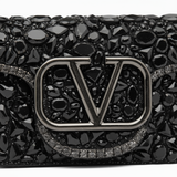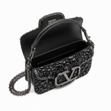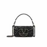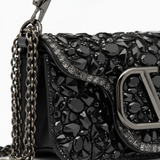 Dramatic glamour meets refined Italian craftsmanship in the Valentino Small Locò Shoulder Bag With Crystals. Designed as a statement piece for evening elegance or couture-level styling, this exquisite bag sparkles with meticulously applied hand-set black crystals that create a mesmerizing textured surface.