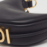 The Fendi Nano Fendigraphy Hobo captures the essence of modern luxury in a compact, sculptural form. Crafted from smooth black leather and accented with bold gold-tone hardware, this miniature hobo embodies Fendi’s playful elegance and unmistakable craftsmanship.